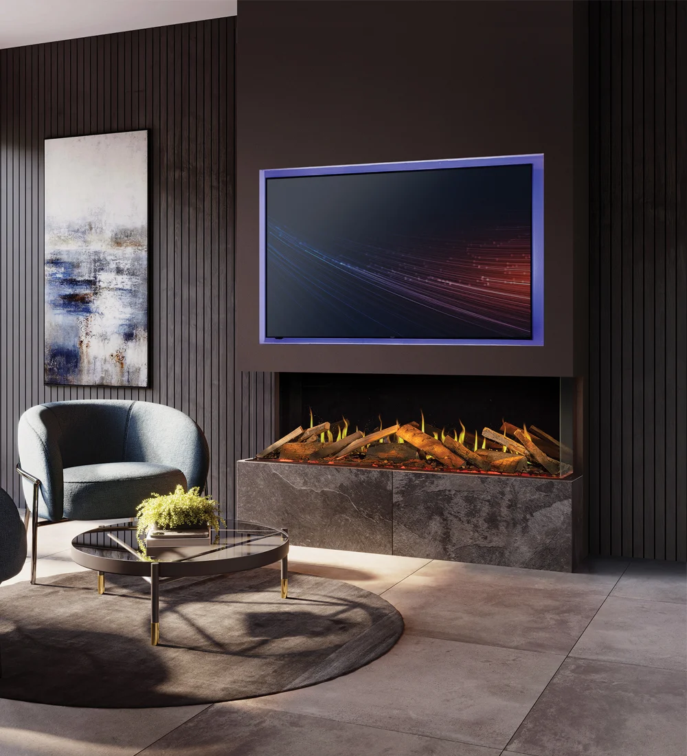 The Firez 1800 Media Wall Fire is a luxury electric fireplace designed to make a bold statement. Featuring an expansive flame display and premium construction, it is ideal for high-end media wall installations.